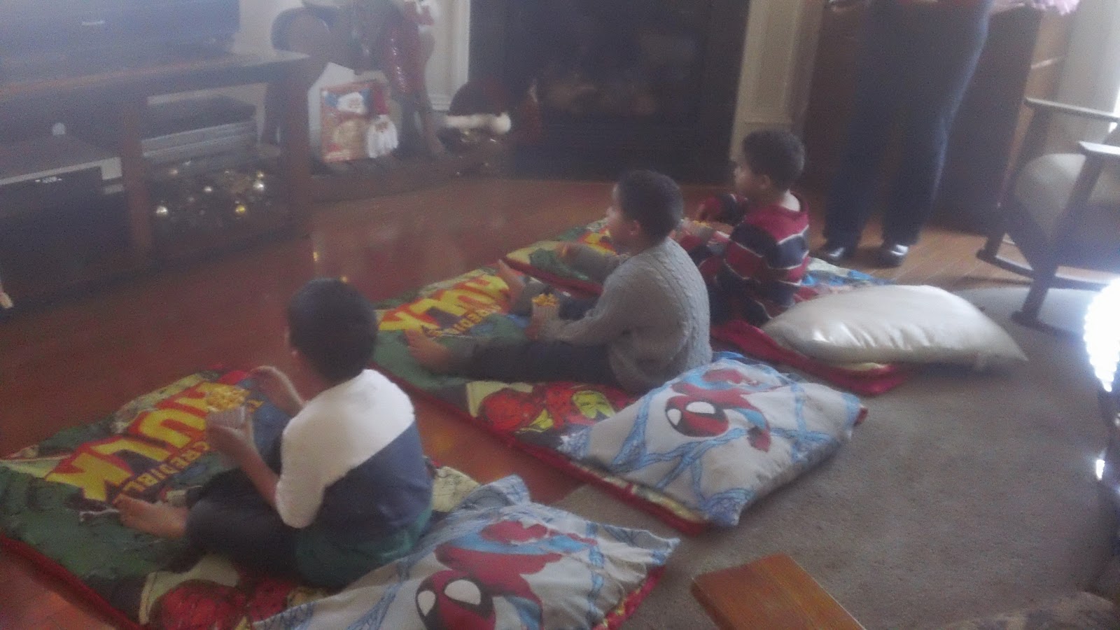 I seriously cannot believe I have not posted on this thing in over a month! How horrible am I? Today I just figured I would share with you some of my kids birthday party. Christian and Malachi (commonly referred to as "the twins") turned 5 on Dec 21st! Having birthdays that close to Christmas is really tough let alone 3 of them. Of course I want them each to feel special so I asked them what kind of cakes they would each like. Malachi chose a green spy cake and Christian wanted a superhero cake. I made them each a chocolate cake with chocolate ganache icing then covered it in fondant. We decided to have a big movie day. We rented "Diary of a Wimpy Kid: Dog Days" because they have been wanting to see that for a long time. We ordered pizzas and had a vegetable tray along with chips and cheese balls of course! Even though it wasn't a huge party the boys had such a blast and enjoyed their cakes so much.